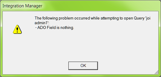 Integration Manager - The following problem occurred while attempting to open Query 'Debtors': - ADO Field is nothing