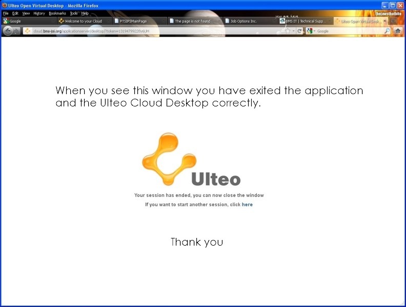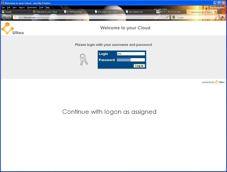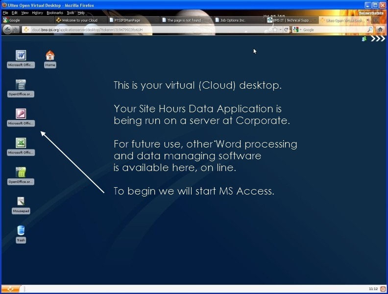 Logging on to your Site Hours Data Cloud, click below on any of the pictures to start a user controlled slide show of the “How To” log on to your Ulteo Cloud Desktop Service